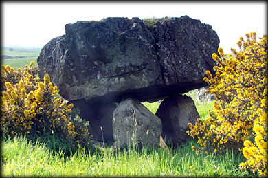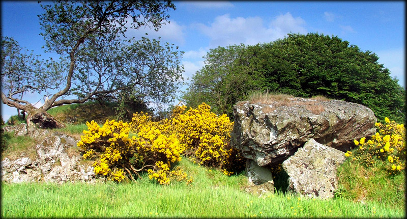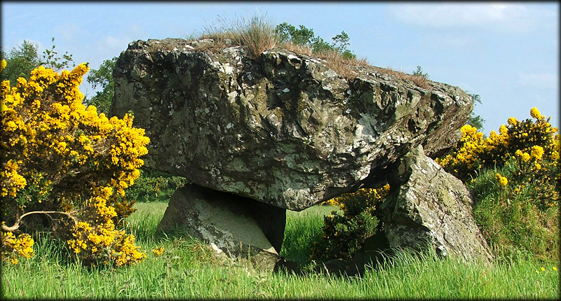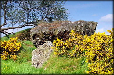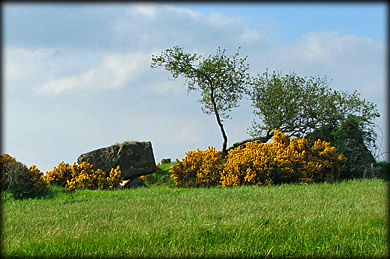 Situated: Near Loughmacrory 3K NW of Carrickmore. Take the turn at Loughmacrory school, then next right, drive to the end. Park at the Water works, walk 200 metres along the track, the tomb is in the field on the left. Discoverer Map 13: H 5780 7679. Last visit Jun 2006. Longitude: 7° 6' 17" W Latitude: 54° 38' 9" N Photos: Jim Dempsey. |