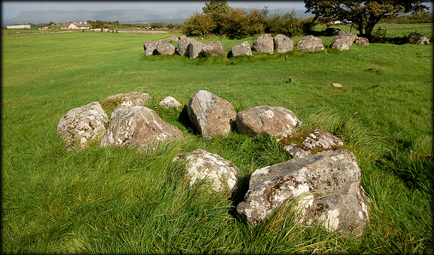 Situated: Two miles south west of Sligo Town, Carrowmore is well signposted and has a visitor centre car park. If heading from Dublin take the R292 for Strandhill and turn right at Redgate cross roads the centre is approximately half a mile down this road on the right. Heritage card accepted. Discovery Map 25: G 6614 3368. Last visit Sept 2020. Longitude: 8° 31' 10" W Visitor Centre. Latitude: 54° 15' 3" N. Photos: Jim Dempsey and José Gutierrez. |
