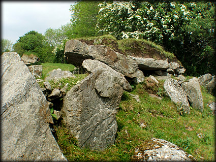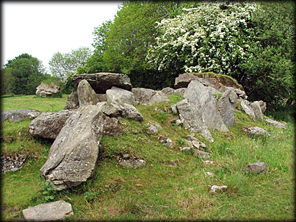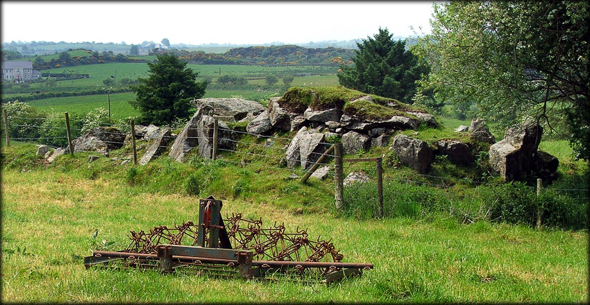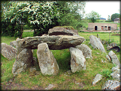 Situated: About 12 kilometres WNW of Cookstown, County Tyrone. From Cookstown take the A505 west, after 10K take a right for Dunnamore then the first left after the school, on your immediate right is a large shed, park here and ask for permission to visit the megalithic monument. Discoverer Map 13: H 6849 8084. Last visit June 2006 Longitude: 6° 56' 18" W Latitude: 54° 40' 15" N Photos: Jim Dempsey |