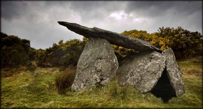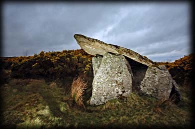 Gortnavern Portal Tomb We decided to try and visit the monument at Gortnavern from the west instead of the sign-posted eastern route which is now quite overgrown and also involves crossing a stream and some rather boggy land. On a previous visit I only managed to view the megalith from a distance. I just hoped the route I drew up on the map worked out. We parked the car at the entrance to a field and walked up a track through two gates and onwards up the field following a trail. I knew from images that the tomb was surrounded by gorse, after about 250 metres we came to a lot of gorse on our left. We ventured into the field and there also on the left stood this fine example of a portal tomb.