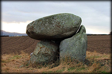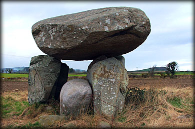Situated:Take the A2 north from Newcastle, County Down, after approx 3 kilometres you will see a small car park to your left, take the left turn immediately after the car park and cross Slidderyford Bridge, the tomb is in a field to your left, about 100 metres past the bridge. Discovery Map 36: J 3929 3441. Last visit Feb 2005. Longitude: 5° 51' 47" W Latitude: 54° 14' 22" N Photos: Jim Dempsey |