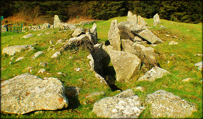 Situated: From Newry drive South from the first roundabout take the B113 west then take the first right after about a mile you come to a T-Junction take a right here, the tomb is situated on your right just after the turn and is sign-posted. Discovery Map 29: J 0649 2404. Last visit Mar 2014. Longitude: 6° 22' 11" W Latitude: 54° 9' 15" N Photos: Jim Dempsey and John Donnellan |