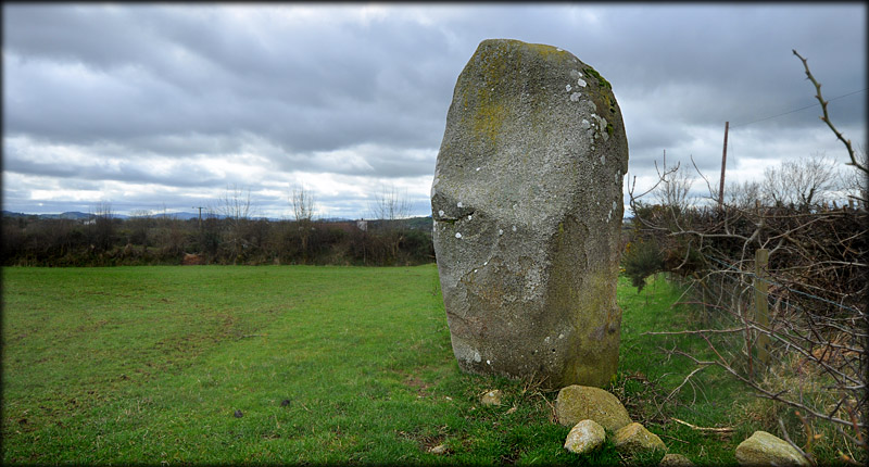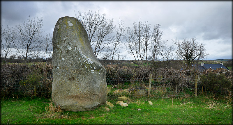 Barnmeen Standing Stone It has been some time since I visited County Down, so I was delighted to go for a spin up to the Rathfriland area with John. We decided to take in a few monoliths which included this huge stone at Barnmeen, it is a megalith I have wished to see for some time now. The stone stands at well over 3 metres tall and is about 1.5 metres wide at the base. A most distinctive feature is the man made concavity which starts about half way up the stone. This is known as a shoulder and it is a feature of a few megaliths around this part of County Down, including Tamnaharry standing stone and the portal tomb at Wateresk.