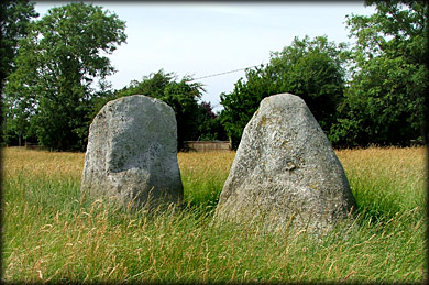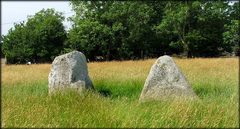 Boherboy Stone Pair The Stone pair at Boherboy gave me a pleasant suprise as the stones were much bigger than I had expected even though I have seen them many times as I drove past this site. It was always one of those sites I meant to stop at but never did. The stones are a male and female pair, I think it is fairly obvious which is which. The female stone is about 1.3 metres high with the pointed male stone slightly smaller. Another site near this location is Raheen standing stone. |