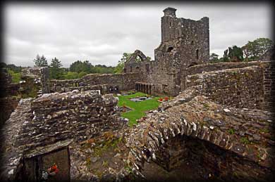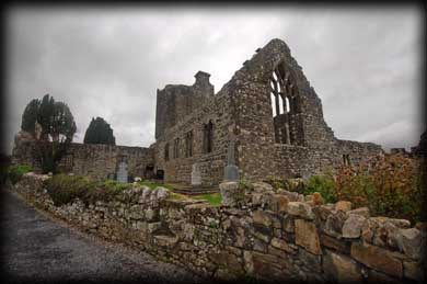 Creevelea Abbey When we arrived in Dromahair County Leitrim we saw a sign for the abbey. This particular route to the abbey brought us along a gorgeous track through trees by the banks of the fast flowing Bonet River. As we walked up the hill to the Franciscan Friary, the east gable of the chancel dominated the horizon. From this angle the ruins of the abbey did not appear to be that large. But we were pleasantly surprised to find the ruins were very extensive. Founded in 1508 by Owen O'Rourke, the church consists of a nave, chancel, tower and south Transept. To the north of the church are remains of a large cloister, a chapterhouse and lots of domestic buildings including the kitchen.had a great |