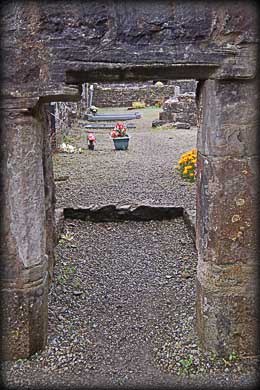 Situated: From Sligo head east on the R286 following the signs for Dromahair. Approx 1 kilometre passed Parke's Castle take a right onto the R288. This brings you into Dromahair. Park at the hotel and walk down behind it following the signs. Or alternatively drive through the town turning right onto the R287. Then take the next right. Discovery Map 16: G 7981 3141. Last visit Sept 2010. Longitude: 8° 18' 35" W Latitude: 54° 13' 52" N Photos: Jim Dempsey, Deb Snelson. |