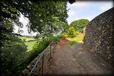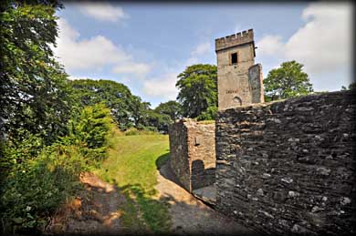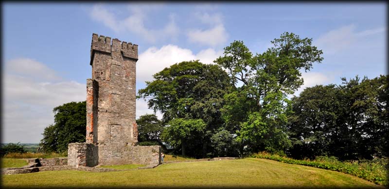 Located on the flat topped motte is an eighteenth century castellated house known as 'Byrne's Folly'. It was built in 1780 by a local pirate named Patrick Byrne. The track cut into the southern side of the mound gave access to the house. The Normans delimited the top of the motte with a wooden palisade and would have built a tower within it. The motte may have appeared very similar when it was originally built, with a wooden tower instead of the stone structure. |