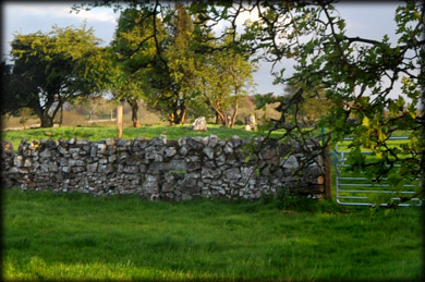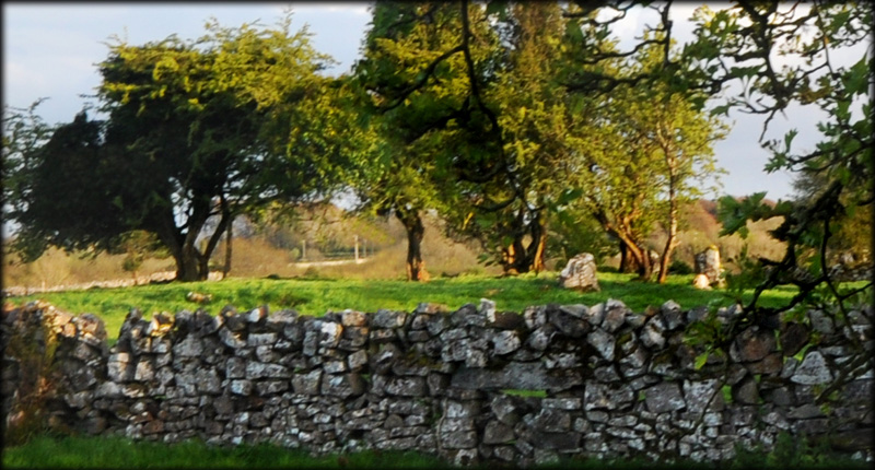 Situated: From Glebe North head further east to the end of the field. The circle is over the fence and in the next field to the south. Discovery Map 38: M 1635 5609. Last visit April 2012. Longitude: 9° 15' 44" W Latitude: 53° 32' 53" N Photos: Jim Dempsey and Deb Snelson. |