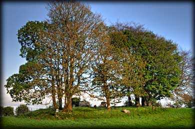 AKA Tonleeaun Stone Circle The east circle or Tonleeaun circle is probably the hardest to find. We thought we could approach from Glebe south circle but this prooved fruitless. By the time we had found a more navigable route we had run out of time. The best way is to hop over the fence to the east of Glebe North and turn south and go through the gate into the next field. What remains is a ruined cairn circle lying under a group of Hawthorn trees. Now that I know the easiest way, we will be back for a closer look. ![]() |