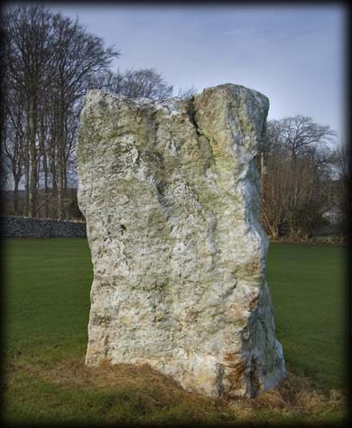 Glencullen Standing Stone Standing at 1.83 metres high the impressive standing stone at Glencullen is certainly the biggest block of quartz I have seen to date. As the sun hits the quartz the light just radiates out from this really handsome stone. Known locally as 'Queen Mab' the stone is believed to be one of two stones used by Vikings to play a game of rings. There is now no trace of the other stone. There are quite a few sites of interest close by including the wedge tomb at Ballyedmonduff. Access to the stone is quite easy. Situated: From the M50 take exit 15 to Kiltiernan then take the Glencullen road, turn left onto Barrack Road at Johnny Fox's Pub, The stone can be seen in the field to your left just past the first gate. The stone stands on a par three golf course. Discovery Map 50: O 1905 2030. Last Visit Feb 2008 Longitude: 6° 13' 3" W Latitude: 53° 13' 11" N |