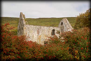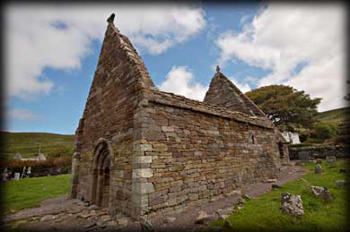 Situated: From Dingle head west on the R 559 then turn right for Baile na Fheirtearaigh , also the R 559. The church is on your right about 7 kilometres from Dingle. Discovery Map 70: Q 4023 0622. Last visit May 2013. Longitude: 10° 20' 11" W Latitude: 52° 11' 5" N Photos: Jim Dempsey and Deb Snelson. |