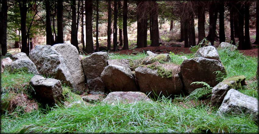 Unfortunately due to it's close proximity to the city this monument has not always been treated with due respect, on numerous visits I have found many beer bottles scattered around the site and even the remains of a fire lit on the actual stones. But please do not let this put you off visiting, as the site is set in a wonderful location, the views over Dublin from the Car-park are splendid. There are many other megalithic sites situated in the Dublin mountains not too far from here, including Kilmashogue portal tomb and another wedge tomb at Ballyedmonduff. |