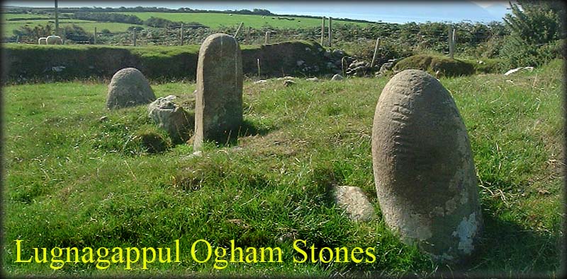 Lugnagappul Ogham Stones At Lugnagappul in a field known as Pairc na Fola, where an ancient battle took place, is a small cairn called Cnoc na Fola, 'hill of Blood' which is said to be the burial place of those killed in the battle. There are a number of standing stones around the perimeter of the cairn, two of which bear ogham inscriptions.
