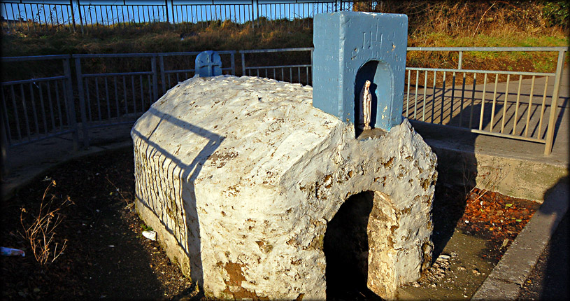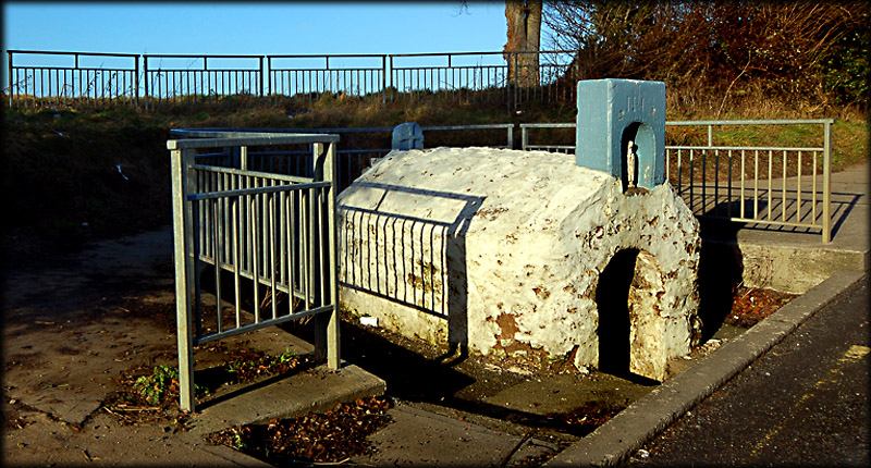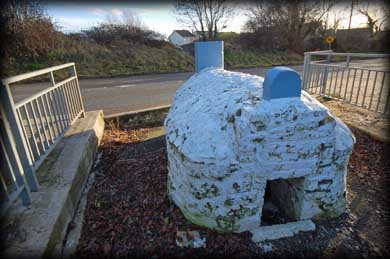 Situated: Very easy. From Blanchardstown head west on the N3 following the signs for Mulhuddart. In the village take the first right immediately after the petrol station. The well is situated on your left about 500 metres up this road. Discovery OS Map 50: O 0693 4101. Last visit Jan 2013. Longitude: 6° 23' 30" W Latitude: 53° 24' 30 " N Photos: Jim Dempsey. |