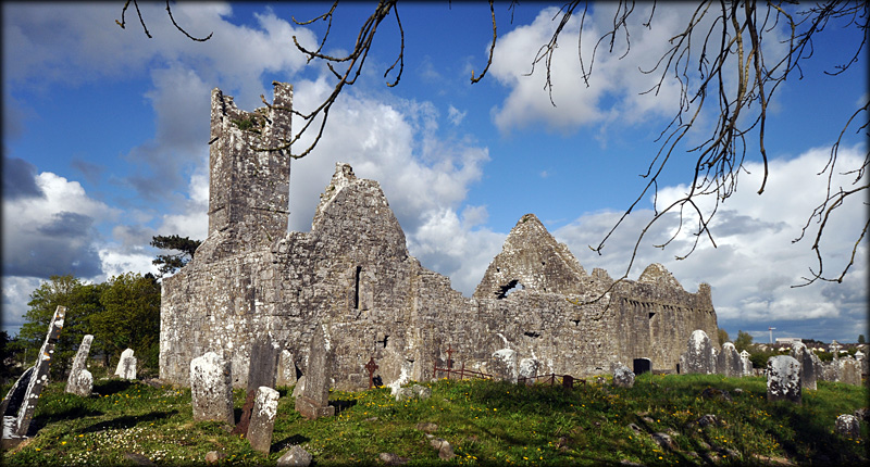 Situated: From Limerick take the N69 south. At the south circular junction take a left turn at the 2nd roundabout onto the R 510. Take a right turn at the 2nd roundabout, remaining on the R 510. Take a left at St Nessans church. Discovery Map 65: R 5426 5385. Last visit April 2012. Longitude: 8° 40' 32" W Latitude: 52° 38' 3" N Photos: Jim Dempsey and Deb Snelson. |