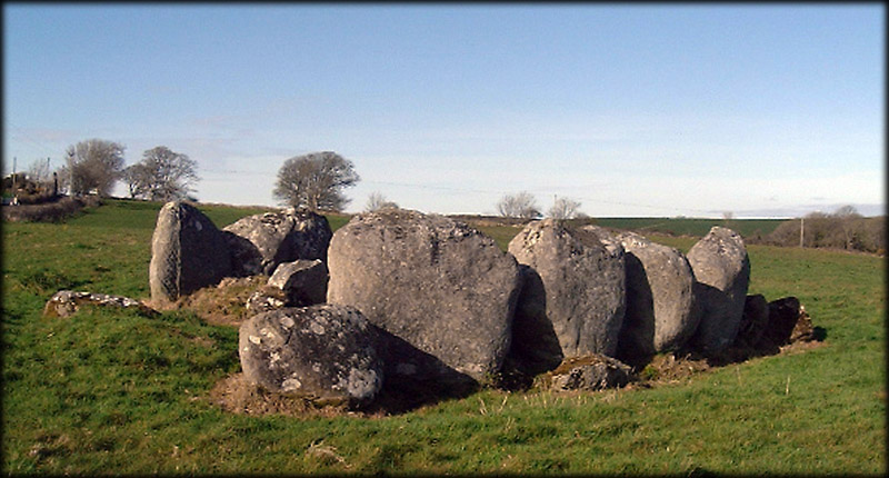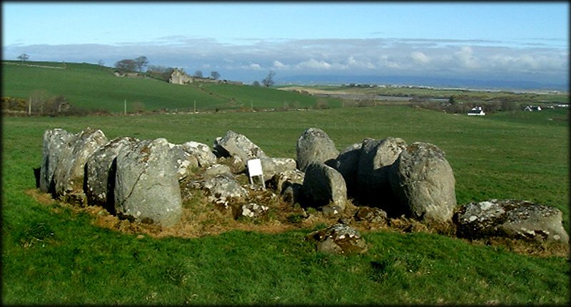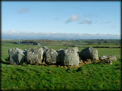 Situated: From Ballina go north through Killala, take a right after you cross Palmerstown bridge then drive north along this road for a kilometre, the sign-posted tomb should be visible in the field to your right. Discovery Map 24: G 1834 3330. Last visit April 2004. Longitude: 9° 15' 9" W Latitude: 54° 14' 31" N Photo: Jim Dempsey. |