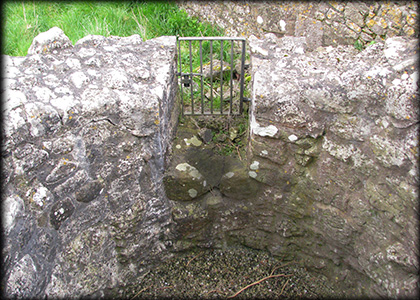 Features: A bullaun in the wall below current entrance.