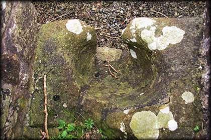 The monastic site at Seir Kieran probably dates to the late 5th century and is traditionally believed to be founded by St Ciarán the Elder. The site was the burial place for the Kings of Ossory. Although the site has a rich history what remains today is a sad collection of ruins. The round tower is situated up against the northwest corner of the graveyard wall. It stands almost 3 metres high, with a modern opening to the south. At the base of this entrance ia a huge bullaun stone, pictured below right. Also located in the graveyard is the base of a 10th century high cross.