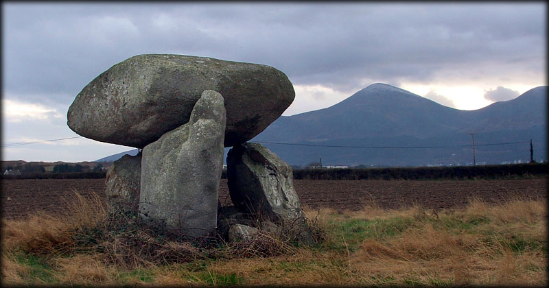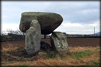 Situated:Take the A2 north from Newcastle, County Down, after approx 3 kilometres you will see a small car park to your left, take the left turn immediately after the car park and cross Slidderyford Bridge, the tomb is in a field to your left, about 100 metres past the bridge. Discovery Map 36: J 3929 3441. Last visit Feb 2005. Longitude: 5° 51' 47" W Latitude: 54° 14' 22" N Photos: Jim Dempsey |