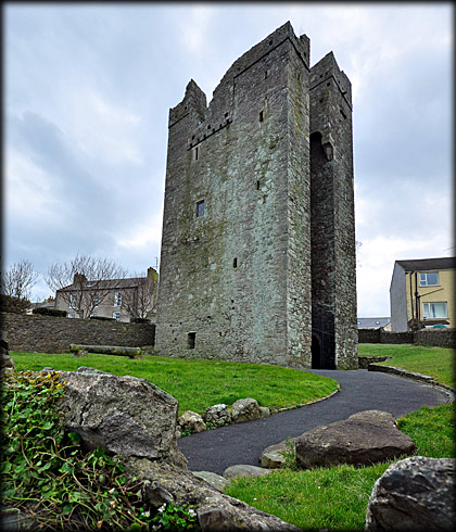 On the opposite side of the road to Cowd Castle is another 15th century Tower house known as Margaret's Castle. There is evidence to suggest that there were originally three storeys, but only two now remain. In the image above you can see the southeast corner of the tower with the blue door in the east wall. There are two turrets projecting from the northwest wall. We were unable to photograph this corner of the tower house because of the close proximity of modern buildings. Access to the upper floors was via a spiral staircase in the western turret. At the northern end of the town was another castle named the King's Castle. Originally built in the 12th century the castle was rebuilt in the 19th century and after further restoration it now operates as a nursing home. ![]() |