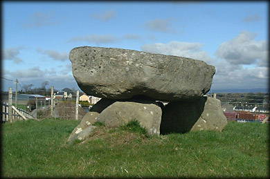 Situated: From Ballina Fire Station take the R310 south for Foxford, 200 metres after the second set of crossroads you take a right, the tomb is sign-posted. The monument is about 250 metres down here on your left. Discovery Map 24: G 2375 1818. Last visit Apr 2004 Longitude: 9° 9' 57" W Latitude: 54° 6' 25" N Photos: Jim Dempsey. |
