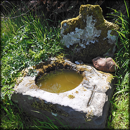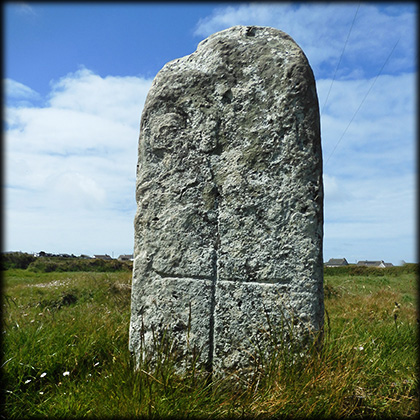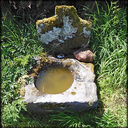 These two ecclesiastic enclosures, Kilmore, meaning big church and Kilbeg little church, are beautifully situated just 30 metres apart in Ballincolla townland on the western side of the penisula. Kilbeg/An Chill Bheag is a subrectangular enclosure, aligned NNE-SSW it measure roughly 16 metres x 13 metres. Within the enclosure are three cross inscribed slabs and the cross inscribed bullaun stone, pictured below left. The rough cross shaped stone behind the bullaun also bears an inscribed latin cross, the other crss slab lies broken in two pieces. Kilmore/An Chill Mhór is a large circular walled enclosure, measuring 40.5 metres in diameter. The two stones in the foreground of the top image may mark the entrance. Standing inside the enclosure is the 1.23 metre high cross inscribed slab, pictured below right. These simple antiquities offer so much insight to our historical culture. |