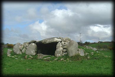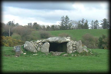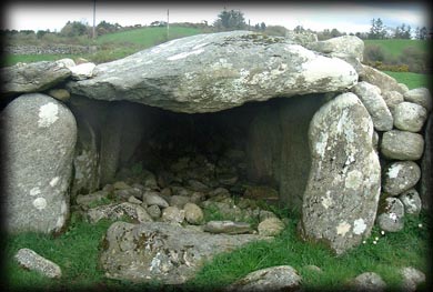 Situated: From Ballina take the R294 East, then the third right after the golf course, then after 3K take a left at the crossroads, then turn right at the second right, the megalithic tomb is in the field immediately to your left. Discovery Map 24: G 3143 1616. Last visit April 2004. Longitude: 9° 2' 52" W Latitude: 54° 5' 24" N Photos: Jim Dempsey. |