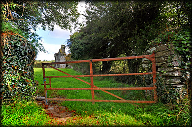 Situated: From the Celtic Ross hotel in Rosscarbery head west on the N71 for 450 metres. Turn left onto the R597. 1.6 kilometres turn left. 700 metres turn right. Coppingers Court is 650 metres up here on your right.Discovery Map 89:W 2603 3597. Last visit Sept 2012. Longitude: 9° 4' 1" W Latitude: 51° 34' 18" N Photos: Jim Dempsey and Deb Snelson. |