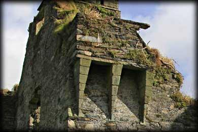 Coppinger's Court Fortified House This impressive multi-sided three storey ruined stronghold was built in the fertile Ballyvirine valley west of Rosscarbery by Sir Walter Coppinger shortly before 1616. The house is rectangular in plan, with two wings projecting from the eastern wall and another centrally aligned wing from the western wall, creating a total of 9 gables. The walls are wondrously filled with large windows, some at the highest levels still containing mullions and hood moulding.