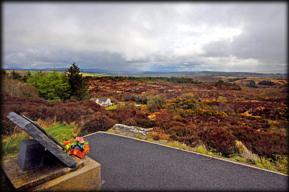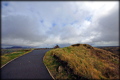 Rock of Doon Inauguration site, Holy well and Mass rock I returned to Doon Rock eager to show my friend Debbie this awesome site. It was over twenty years since my first visit and quite a while since my last. As I approached on my first trip, a woman was standing next to the well with her dress tucked up and she was pouring water from the well down her legs, I decided to visit the rock first and leave her in peace. The walk up to the inauguration rock was quite a stiff one, but well worth the effort. Although the rock is only 120 metres high the views from here are wonderful, it's not surprising the O'Donnells chose this site to inaugurate the chieftains. It was truly an amazing and magical feeling to stand on the Rock of Doon and survey the surrounding countryside. 25 O'Donnells were inaugurated chieftain here from Eighneachan in 1200 to Niall Garbh in 1603. Oh Boy! was I in for a surprise, the track up to the rock had been newly laid with tarmacadam, but it did not stop there, the tarmac also covered a large area on the top of the rock, I might as well have been standing in Tesco's car-park. Alas that whole sense of history just seemed to be lost. I was shocked that this had been allowed to happen and wondered who had given their permission.