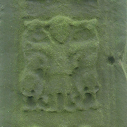 The west face pictured below right bears many biblical scenes, from the bottom panel up they are as follows: 1. Adoration of Magi. 2. Wedding at Canna. 3. the miracle of the Loaves and Fishes. 4. Christ enters Jerusalem and 5. The Mocking or Arrest of Christ ? The east face, below left, bears iconographic panels with scenes from the old Testament. |