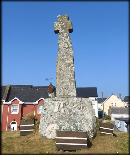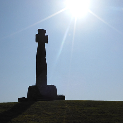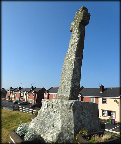 Situated: Very easy. From Bundoran head south on the R267. after 2 kilometres you will join the N15. After a further kilometre you will arrive in Tullaghan. The cross is situated on a small hillock on your right opposite the garage on your left. There is parking at the next right turn.