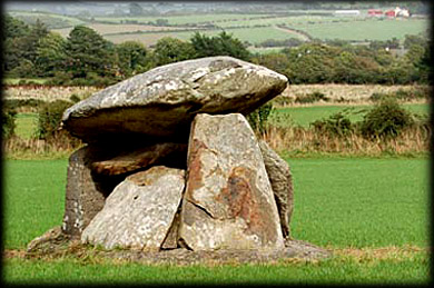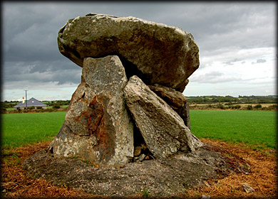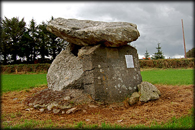 Situated: From Waterford City take the N25 west, after 6 K take the R681 south, then after approx 6 kilometres take the fourth left, then 2k down this road take another left, 100 metres down here take a left up a track. The tomb can be viewed from the road. Discovery Map 75, 82: S 4946 0311. Last visit Sept 2006. Longitude: 7° 16' 37" W Latitude: 52° 10' 40" N Photos: Jim Dempsey |