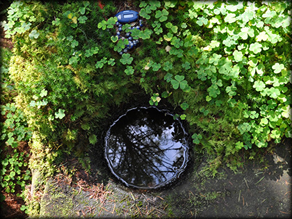 St Patrick's Well, a bullaun cut in the rock. A smaller bullaun or cup mark can be seen in the foreground |
