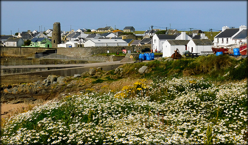 Tory Island / Toraigh Round Tower An Cloigtheach, or bell tower, is the largest surviving monument of the early medieval Tory island monastery, it can be clearly seen, peering over the tops of houses in West Town, as you approach the island. According to the National Monuments website the Tory Island round tower is 15.7 metres in circumference and stands 12.8 metres high. This is quite short compared to other round towers, hence the reason why it's described as a half tower. For comparison Ireland's tallest tower, located at Kilmacduagh in Galway, stands over 34 metres in height. The monument was possibly constructed in the 12th century and the materials used reflect it's island location, water-rolled granite beach stones were mortared with shell lime, that was produced from various crushed seashells.